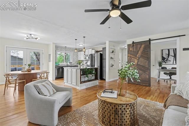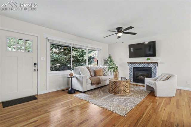 Set on a generous 8,500 square-foot lot in central Colorado Springs, this thoughtfully designed ranch offers the ideal blend of comfort, functionality, and long-term value. This home has been pre-inspected and is ready to go! Main level living is complemented by solid hardwood floors that extend throughout much of the home, creating warmth and a sense of continuity. The open concept layout seamlessly connects the living, dining, and kitchen spaces; perfect for both everyday living and entertaining. The kitchen is anchored by a central island and features granite countertops and a gas range, offering both style and practicality. In the living area, a gas fireplace provides a cozy focal point, while a sliding glass door off the dining space opens to the back deck and expansive, fully fenced backyard providing an inviting canvas to create your ideal outdoor retreat. The flexible three bedroom floor plan includes a versatile third bedroom that easily functions as a home office or study. The full bathroom has been tastefully updated with tile flooring, adding a fresh touch. Outside, a circular concrete driveway and attached one-car garage provide added convenience and ample parking. Key system updates include a new water heater (2024), furnace (2017), and roof (2017) offering peace of mind for years to come. Ideally located with easy access to downtown Colorado Springs, the Powers corridor, Highway 24, Fort Carson and Peterson AFB. This home combines accessibility with everyday livability. With its generous lot, thoughtful updates, and central location, it presents a rare opportunity for attainable single-family living in an established neighborhood.