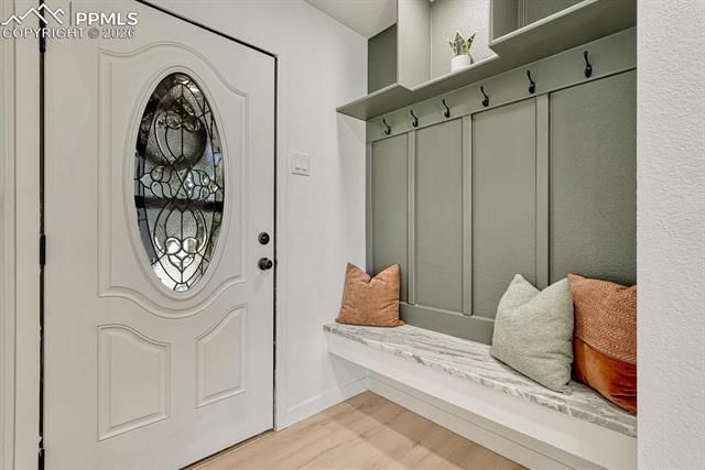 You are invited to explore a property that offers more than just a home. It delivers an elevated, private retreat with stunning views. This remarkable property is set on just over half an acre in the middle of the city! Fully reimagined this home showcases breathtaking updates throughout along with unobstructed views of Pikes Peak and the entire Front Range from every west facing window. Step inside to a bright and beautiful open concept main level designed to impress. The main level is an architectural standout, featuring a spacious living room with a show stopping fireplace, a formal dining area, and a chef’s dream kitchen. A sliding door off the living room leads to a large deck overlooking the expansive yard and sweeping mountain views. Picture yourself enjoying a glass of wine as the sun sets behind the mountains and fills the sky with color. The kitchen is beautifully appointed with a large island, leathered granite countertops, a dramatic counter to ceiling backsplash, and a dedicated coffee and wine bar complete with a wine fridge. Just off the kitchen, a charming screened in porch provides a inviting space that is perfect for warm summer evenings. This home offers true main level living with a spacious primary suite and laundry room on the main level. The primary suite features a large walk in closet, a spa inspired bathroom, and mountain views through the window. A second bedroom, full bathroom, and laundry room complete the main level. Down the iron railed staircase, the expansive ground level basement opens up to a bright and inviting space. A striking floor to ceiling tile accent wall with a modern fireplace creates a dramatic focal point. The basement includes two additional bedrooms, each with its own ensuite three quarter bathroom. Nearly every detail of this home has been thoughtfully updated. This is more than a home. It is a lifestyle defined by space, privacy, and some of the best views Colorado has to offer. This one won't last long!
