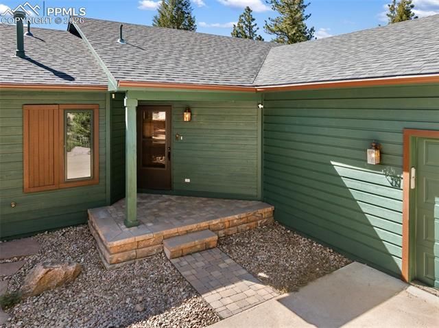 Experience true Colorado living with this beautifully designed home featuring main-level living and breathtaking views of Pikes Peak from nearly every room. Step inside to warm hardwood flooring and a spacious kitchen complete with Corian countertops, breakfast bar, and all appliances—perfect for everyday living and entertaining. The inviting great room showcases a stunning stone gas fireplace, wall-mounted television, and French doors that open to an enormous deck, where you can soak in those iconic mountain views. The main level also includes a versatile office or guest bedroom, along with a luxurious primary suite featuring two walk-in closets, a five-piece bath, and a cozy window seat perfectly positioned to capture views of Pikes Peak. A convenient laundry room and additional half bath complete this level. Downstairs, the walk-out lower level offers a spacious family room with another wall-mounted television and access to a covered stone deck—ideal for relaxing or entertaining. Two additional bedrooms, including one with a walk-in closet, provide comfort and privacy, and all enjoy those same stunning views. You’ll also find two large storage rooms with ample shelving. This home has been thoughtfully updated with a brand-new roof, fresh exterior paint, a radon mitigation system, and includes a 1-year home warranty for added peace of mind. Enjoy an oversized 2-car garage with shelving, a storage shed, and the rare bonus of an additional lot of over 1 acre included in the price—offering extra space and future potential. The community enhances the lifestyle with nine private fishing ponds, making this property a true mountain retreat. Don’t miss this exceptional opportunity to own a home where comfort, space, and unforgettable views come together.