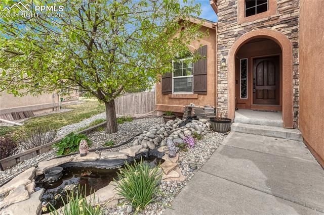 Comfort and Radiant Style | Beautifully Maintained two-story Home | Nestled in the desirable Cordera Community. Just steps from Chinook Trail Elementary & Middle School, this 5BR/3.5BA, 3,700+ SQFT residence evokes subtle Southwestern vibes with a gorgeous stucco exterior, tranquil fish pond, and covered entryway. The home is situated on a cul-de-sac lot with an entertainer’s fully fenced-in backyard, covered backyard patio ideal for grilling, gardening and basking in unobstructed views of Pikes Peak. Brimming with natural light, the interior captivates with vaulted ceilings, hardwood entry floors, open layout, Pikes Peak views, attractive window coverings/blinds, whole house intercom system, home office, and an oversized living room. Enjoy the party possibilities of the adjoining formal dining room. Chefs and foodies are sure to delight in the gourmet kitchen featuring stainless-steel appliances (JennAir and Whirlpool), granite countertops, gas cooktop, built-in microwave, dishwasher, double wall ovens, French door refrigerator, 42” wood cabinetry, center island, walk-in pantry, recessed lighting, and an adjoining family room with gas fireplace. Oversized for maximum comfort, the primary bedrooms dazzles with a 3-sided fireplace, sitting room, walk-in closet, and an en suite boasting a jetted tub, dual sinks and radiant heat flooring. Two extra bedrooms and a full bathroom complete the upper-level, while the finished basement mesmerizes with two bedrooms, built-in wet bar, rec room w/fireplace, and a full bathroom. Additional considerations: attached 3+ car garage with bike storage, overhead storage, and freezer, LG washer/dryer & utility sink, Ring doorbell, security system w/cameras, select furniture included (optional), Cordera Community Center & pool, close to shopping, hospitals, restaurants, and entertainment, near I-25 for easy commutes to Denver & Downtown Colorado Springs, and more! Become the newest Cordera home owners, and start living the good life!