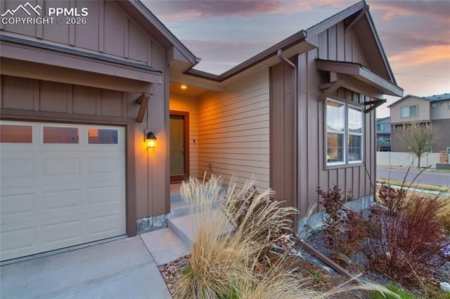 Beautifully upgraded ranch home on a premium corner lot in Banning Lewis Ranch, built in 2022 and truly better than new. This 3-bedroom, 2-bath home offers 1,822 sq ft of thoughtfully designed living space, including a non-conforming third bedroom perfect for an office, guest room, or flex space. The open layout features 9-foot ceilings, a cozy fireplace, and a seamless blend of wood flooring and carpet throughout. The kitchen is finished with granite countertops, double-oven, staggered natural wood cabinetry, and quality upgrades that carry throughout the home. The spacious primary suite includes a luxurious 5-piece bath and an oversized walk-in closet. Additional highlights include a crawl space for extra storage, abundant interior storage, and a 2-car garage. Situated on a desirable corner lot, this home offers both privacy and functionality. Located directly across from Ashmore Park, you’ll enjoy immediate access to green space and outdoor recreation. Banning Lewis Ranch is known for its top-rated schools and exceptional amenities, including pools, splash park, fitness center, parks, trails, and community events. Move-in ready and loaded with upgrades—this is one you don’t want to miss.