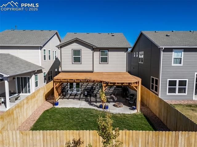 Welcome to — a better-than-new home that delivers comfort, convenience, and thoughtful upgrades in all the right places. Step inside to open-concept main floor living designed for connection and flow. The layout feels spacious yet inviting, making it easy to entertain, unwind, or simply enjoy everyday life. The washer, dryer, and refrigerator are included, so you can move in without additional costs or a lengthy to-do list. The gourmet kitchen features an expansive island and natural gas cooking. The kitchen and bathrooms are finished with elegant quartz countertops — durable, timeless, and built to handle real life. Blinds and window treatments are already installed, including a motorized blind on the dramatic vaulted stairway window, offering effortless privacy and a subtle touch of modern luxury. Out back, the expanded pergola transforms the yard into a true outdoor oasis, enhancing the backyard experience and creating a refreshing escape just steps from your back door. It’s the perfect setting for summer barbecues, evening gatherings, or quiet mornings with coffee. Located in a metro district community, you will enjoy access to neighborhood amenities, including a pool, clubhouse, indoor basketball courts, parks, trails, and a community center. An active security system can also be included at an additional monthly fee, providing added peace of mind. Move-in ready. Upgraded. Exceptionally maintained. Don't spend more to get a new home when you can get this home with all the items the builder doesn't include already completed! This home is ready to welcome you!