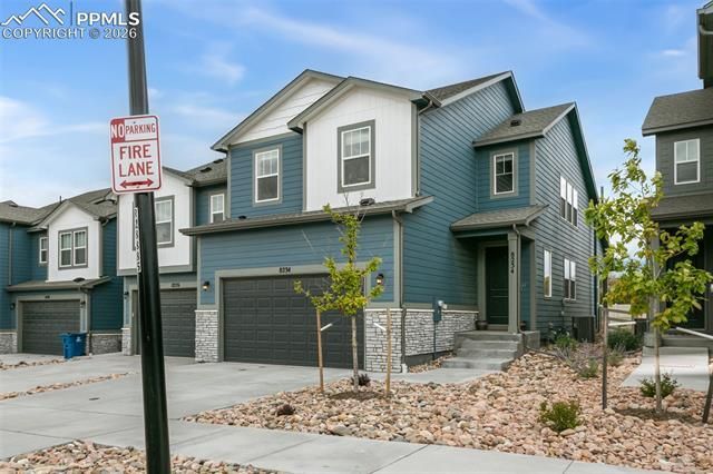 Welcome home to modern elegance mixed with easy living and low maintenance! This bright, move ready townhouse offers the perfect blend of style, comfort, and convenience, complete with beautiful views of Pikes Peak and the Front Range right from your home. Built in 2024, this 2100+ sq ft home features 3 bedrooms with a large functional loft, 3 bathrooms, and a stunning main level primary suite with a spa like en suite bath. Step into a gourmet kitchen with sleek quartz countertops, a large breakfast bar, pantry, and plenty of natural light shining through expansive windows. Soaring 9+ foot ceilings and an open concept layout make the living and dining spaces feel expansive and welcoming. Outdoor living is just as delightful, with a fully landscaped and fenced backyard, covered patio, and a level lot that offers privacy and room to breathe. In addition to the 2 car attached garage, this home features a very large and deep crawlspace, perfect for abundant, easily accessible storage. Aspen Meadows brings added perks: well maintained common areas, access to parks and open space, and proximity to excellent schools, shopping, and recreation. Do not miss out on this blend of modern finishes, natural light, and turn key perfection. Schedule your tour today and see why this could be the one you have been waiting for.