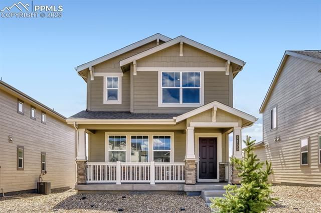 Welcome to this beautifully designed new construction home by Lennar, located in the growing Percheron community of Colorado Springs and served by the highly sought-after Falcon School District 49. This thoughtfully crafted two-story home features 3 bedrooms and 3 bathrooms, offering a layout designed for both comfort and functionality. The open-concept main level creates a seamless flow between the kitchen, dining, and living areas—perfect for entertaining or everyday living. The kitchen is designed to be the heart of the home, with ample cabinetry and counter space, making meal prep and hosting effortless. Upstairs, the spacious primary suite provides a private retreat, while two additional bedrooms and bathrooms offer flexibility for family, guests, or a home office. As a brand-new Lennar home, you’ll enjoy modern finishes, energy-efficient features, and the peace of mind that comes with new construction. Located in the desirable Percheron community, this home offers convenient access to parks, shopping, dining, and major commuting routes, all while being part of a growing neighborhood. If you're searching for a new construction home in District 49 with an open floor plan and modern design, this is an opportunity you won’t want to miss.
