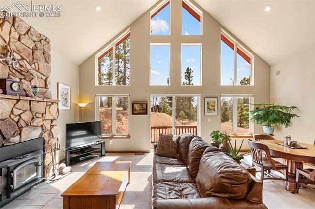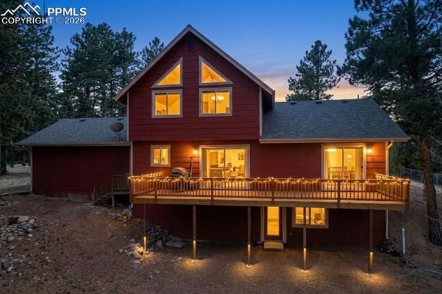Serene Mountain Retreat with Expansive Views and access to Dome Rock State Wildlife Area directly for the neighborhood. - Experience true mountain living on this private .56-acre lot. This 3,352 sq. ft. home features 3 bedrooms, 3 baths, and a 2-car garage, designed specifically to highlight the quiet surroundings and stunning wildlife. Access Dome Rock State Wildlife Area directly for the neighborhood. Walls of windows throughout offer front-row seats to breathtaking sunrises, sunsets, and golden aspens in the fall. Main Level Living - The heart of the home is a 17x22 living room with soaring vaulted ceilings, a window wall, and a fireplace with an efficient insert. The spacious kitchen features wood flooring, a breakfast bar, and a dedicated desk area. The adjacent dining room opens directly onto the back deck for seamless indoor-outdoor entertaining. The main-floor master suite is a private haven with vaulted ceilings, triple-closet storage, and direct deck access. Its ensuite includes a dual vanity, jetted tub, and standalone ceramic shower. Upper Level & Workshop - The upper level provides a vaulted home office and two additional bedrooms with large windows and vaulted ceilings, served by a full guest bath. The 1,465 sq. ft. unfinished lower level is a craftsman's dream, currently used as a workshop (woodworking tools available). Extensive Infrastructure Updates - Rest easy with significant recent upgrades: 2026 Whole-house water filter system - 2025 New water heater - 2023: Furnace control board - 2021: Full roof replacement - 2018: Exterior paint and well pump - 2015: Kitchen range From the rolling sound of mountain thunder to the brilliant night stars, this home is built to enjoy every detail of its natural setting. Schedule your showing to see why the current owners love the peace and beauty of this unique property.